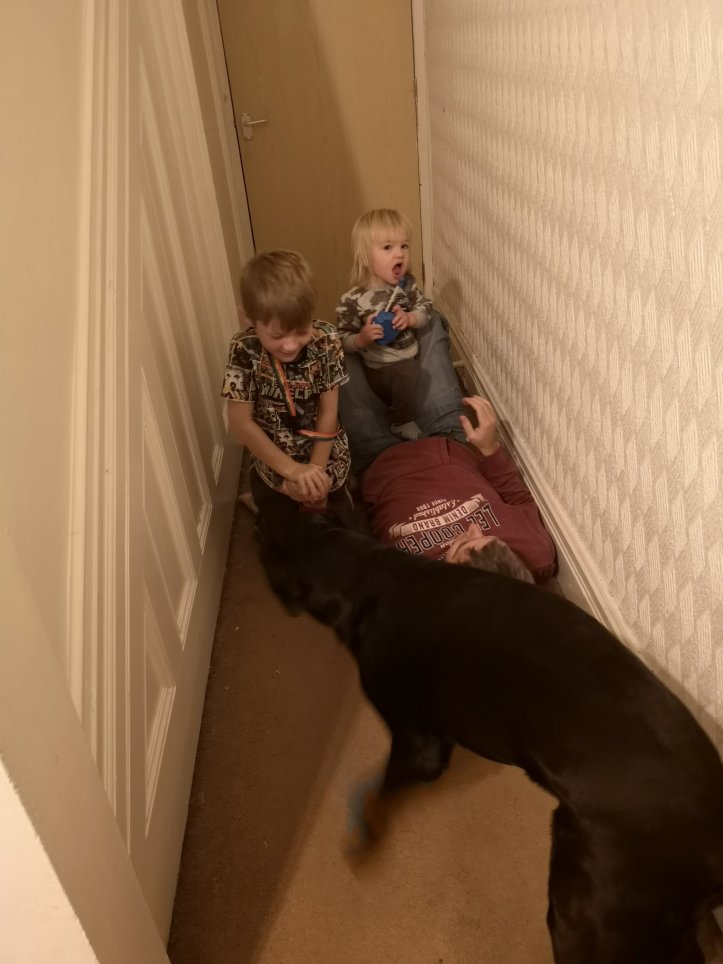 Daddy pile on! Guess I’ll go out my feet up then…(was actually doing more laundry)