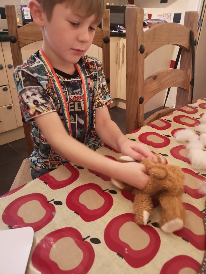 We had this amazing bear in a tin gifted to us and we stuffed and sewed him. I will be posting about that later in the week.