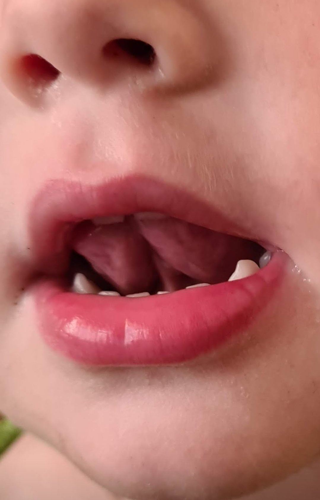 Now on another note I noticed another potential problem. I had long suspected Ezra had a tongue tie, like his older brother. I recognised the signs from trying to breastfeed and the shape of the tongue. I asked several health professionals when he was a small baby to check for tongue tie and I was told he didn’t have one. I thought otherwise but decided to monitor the situation and see how he managed. Visually it wasn’t as obvious as Isaac’s so maybe functionally it would be better too. I couldn’t breastfeed but he managed bottles ok and weaned to solids with no difficulty so I wasn’t really concerned and forgot about it. Until it started niggling me again in relation to his speech. I started to pay more attention to the movement of his tongue when he spoke and there does appear to be some restriction (to my untrained eye). I also caught some really good pictures showing what I think appears to be a tongue tie.